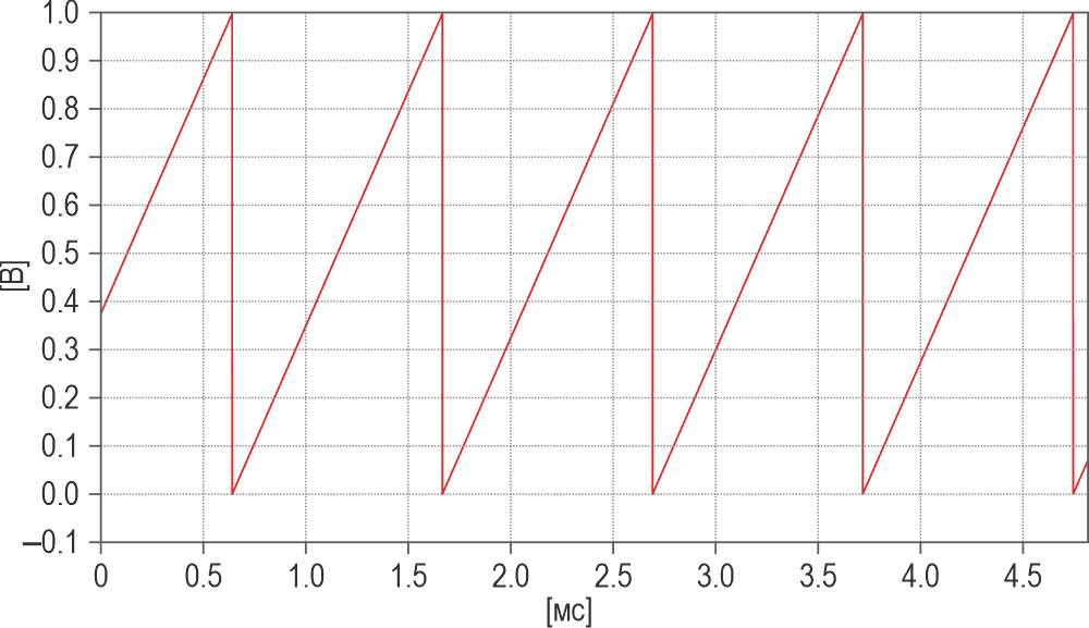 | Рисунок 4. | Пилообразные импульсы частотой 1 кГц при R6 = 120 кОм. |