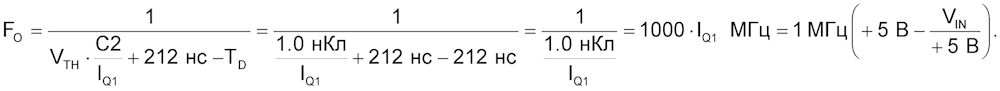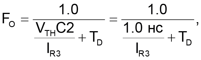 Таким образом, если сопротивление R4 выбрано таким, что R4C2 = TD, как показано на Рисунке 3, компенсация нелинейности будет (по крайней мере, теоретически) полной во всем диапазоне управляющих токов IC. Частота генератора (FO) для этой схемы: